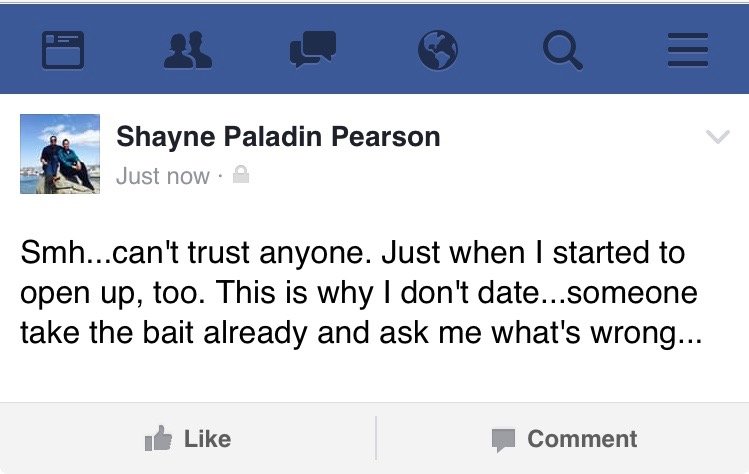 Statuses or tweets like “I’m over it…”, “Can’t trust anyone…”, and “On to the next one” are some perfect, completely indirect ways to let a specific person know how you feel about them!